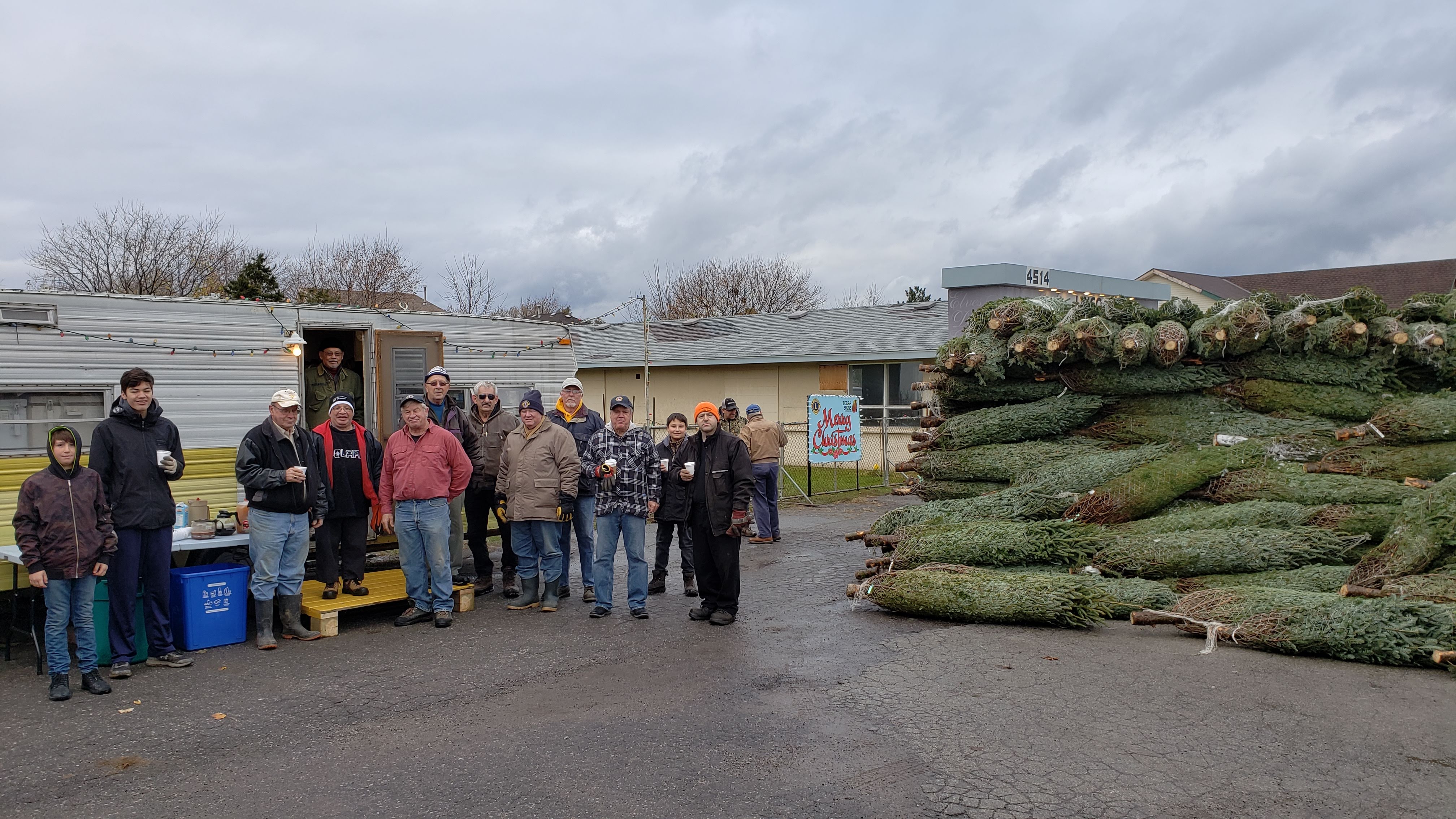 The two pictures below show the Lions and Scouts working together to set up our Christmas tree lot in 2019.